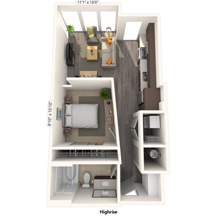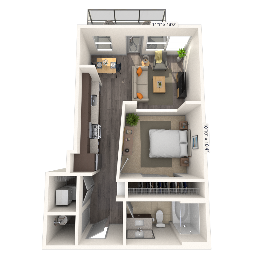 Estudio, 1 Baño, 590 pies²Disponible AhoraGalería del Modelo