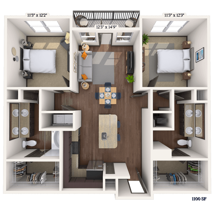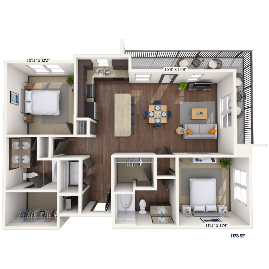 Modelo de apartamento: RyanDesde $1,2021 Dormitorio, 1 Baño, 561-573 sq ftDisponible Ahora![]()