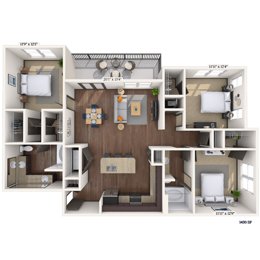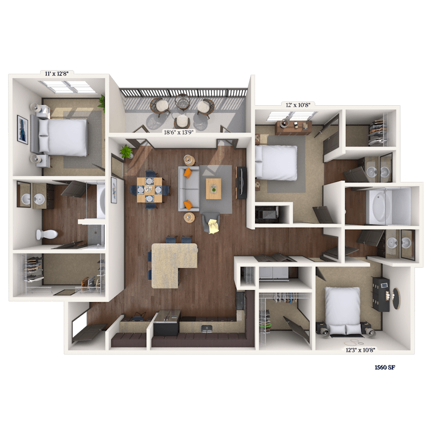 Ryan - Plano 1 Unidad de apartamento: 3419Modelo de apartamento: Ryan$1,2971 Dormitorio, 1 Baño, 561 sq ftDisponible Ahora![]()