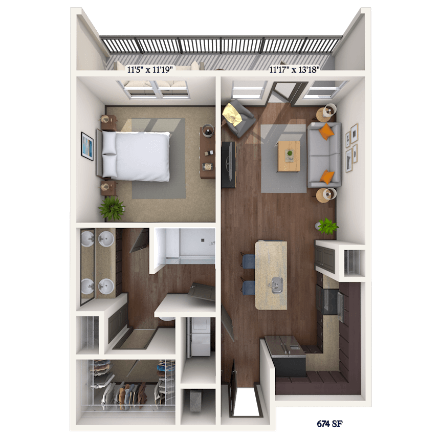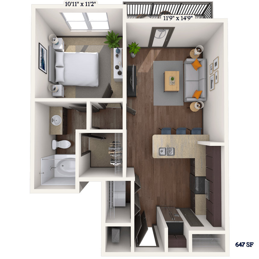 Estudio, 1 Baño, 501 pies²Disponible AhoraGalería del Modelo