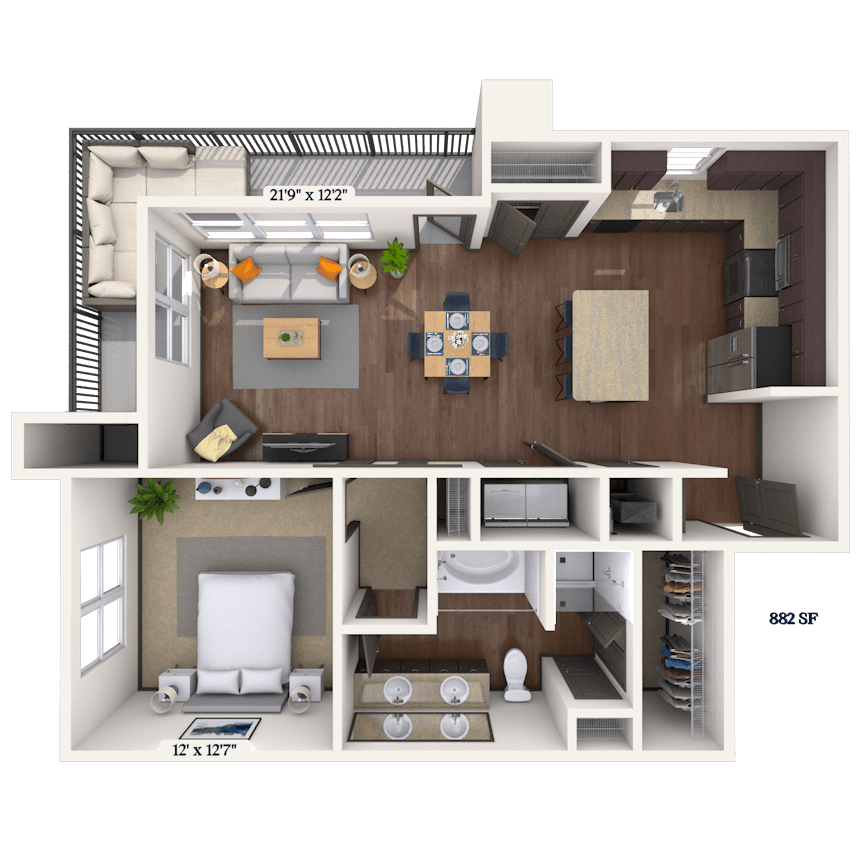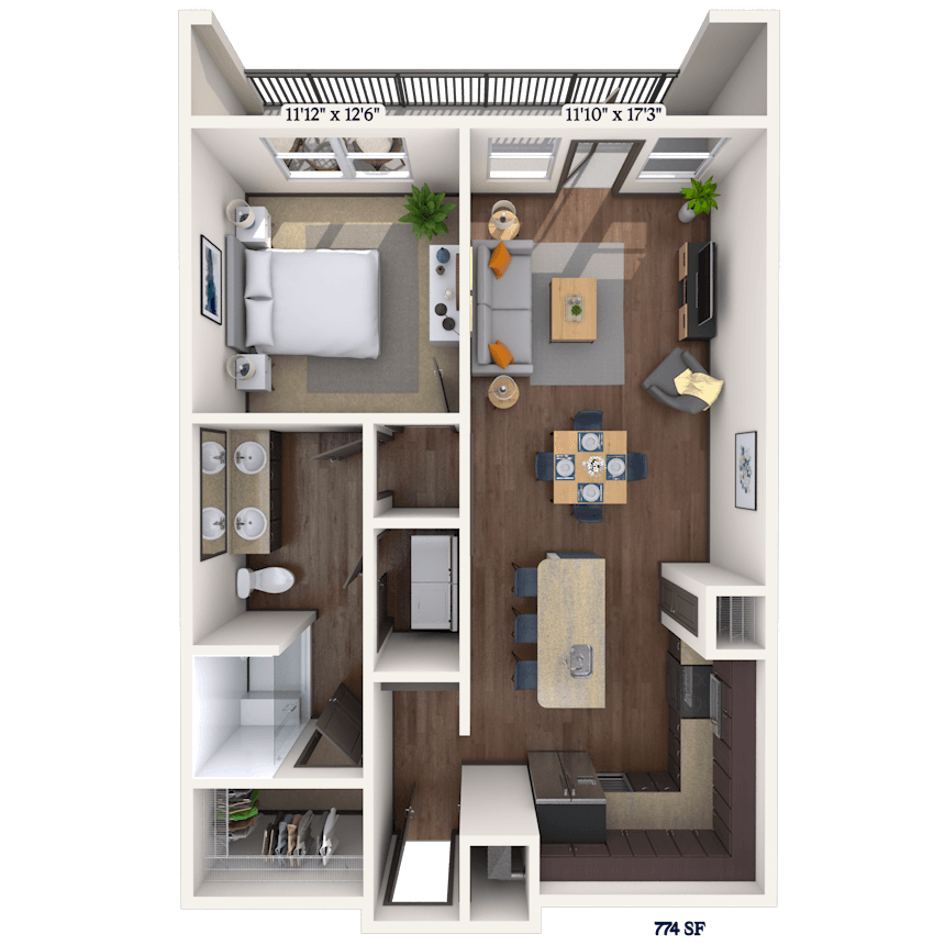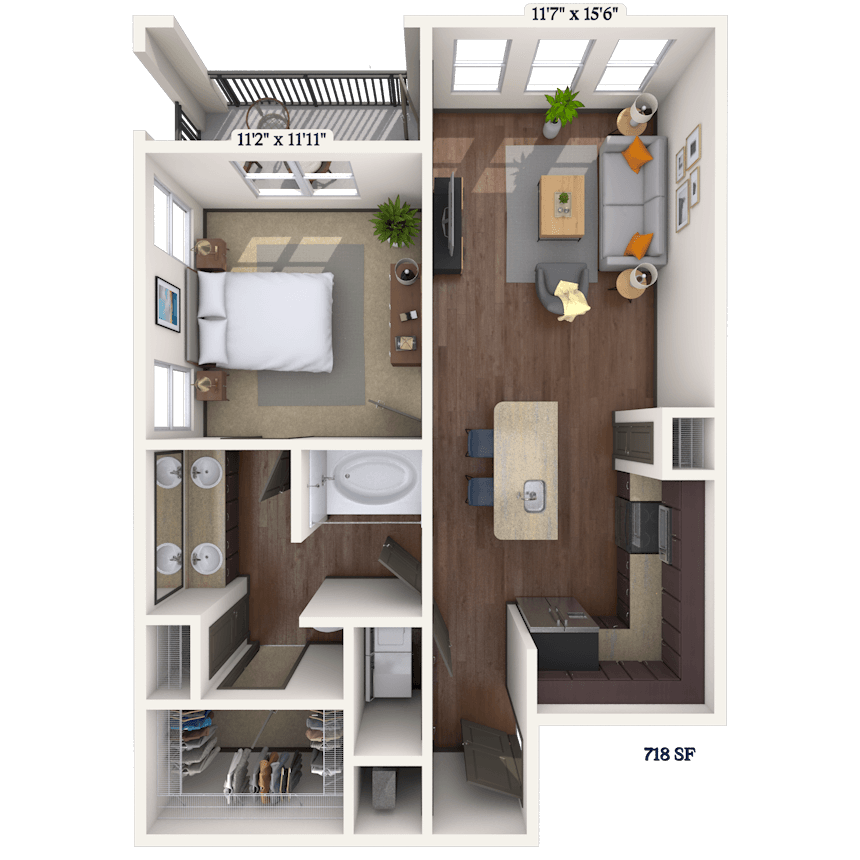 1 Dormitorio, 1 Baño, 660 pies²Disponible AhoraGalería del Modelo
