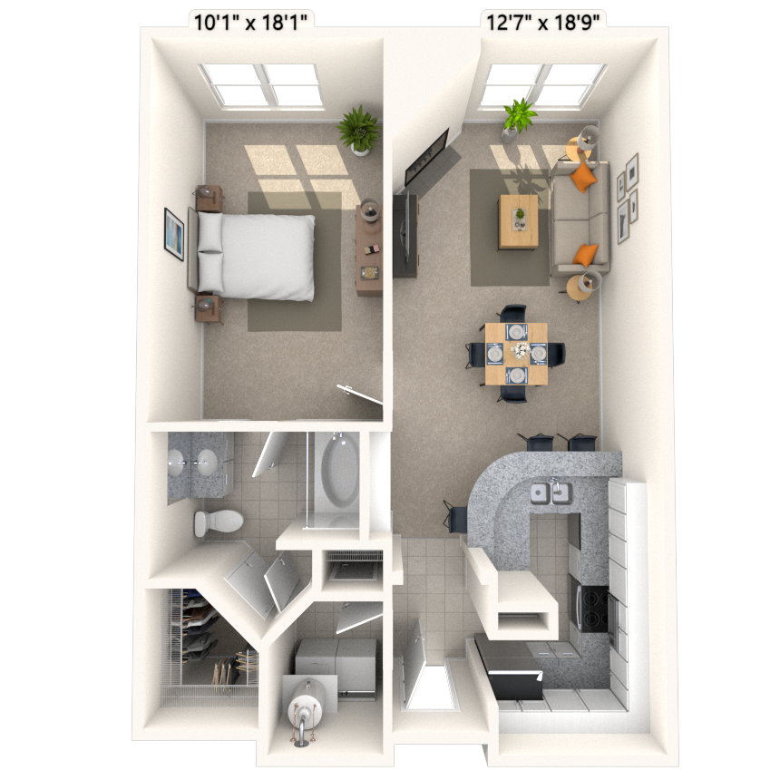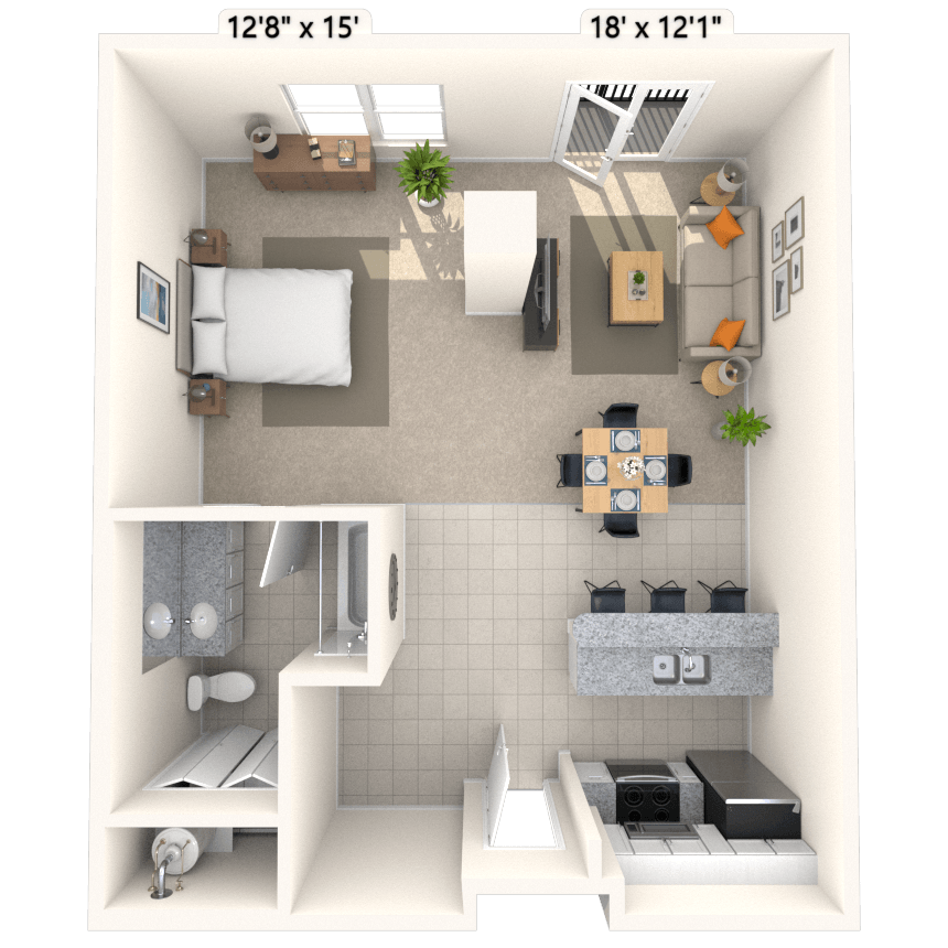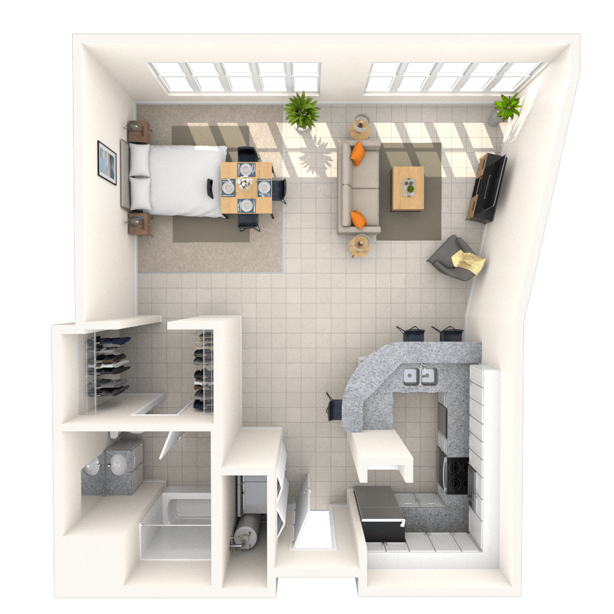 Unidad de apartamento: 227Modelo de apartamento: Studio 0x1 400 SF$1,260Estudio, 1 Baño, 400 sq ftDisponible Ahora![]()