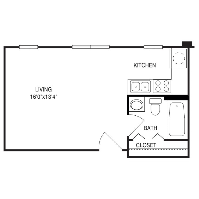 Modelo de apartamento: Studio 0x1 344 SFEstudio, 1 Baño, 344 sq ftNo Disponible![]()
