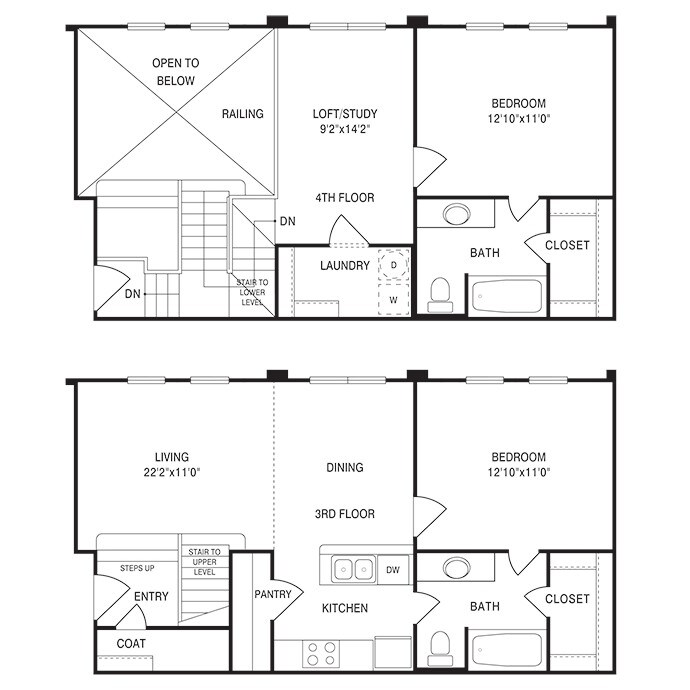 Modelo de apartamento: Dual Level 1x1 818 SF1 Dormitorio, 1 Baño, 818 sq ftNo Disponible![]()