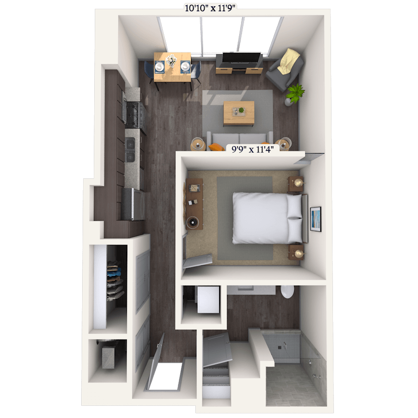 Modelo de apartamento: Studio 0x1-599 SFDesde $1,915Estudio, 1 Baño, 599 sq ftDisponible March 7, 2026![]()