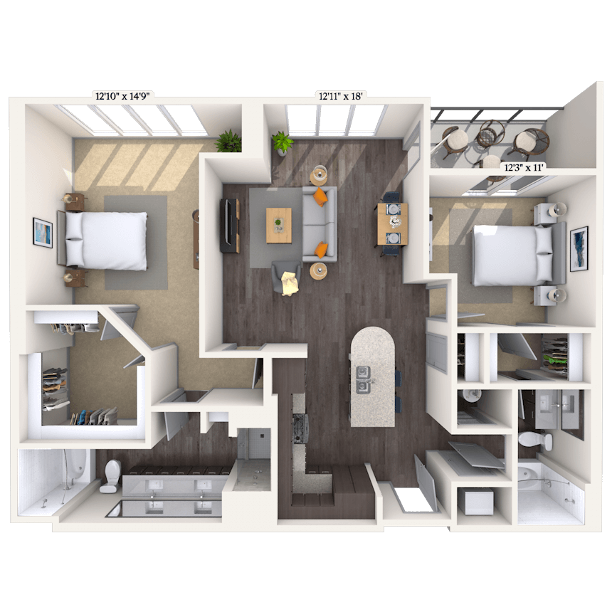 Modelo de apartamento: Traditional 1x1 859-866 SFDesde $2,2851 Dormitorio, 1 Baño, 859 sq ftDisponible Ahora![]()