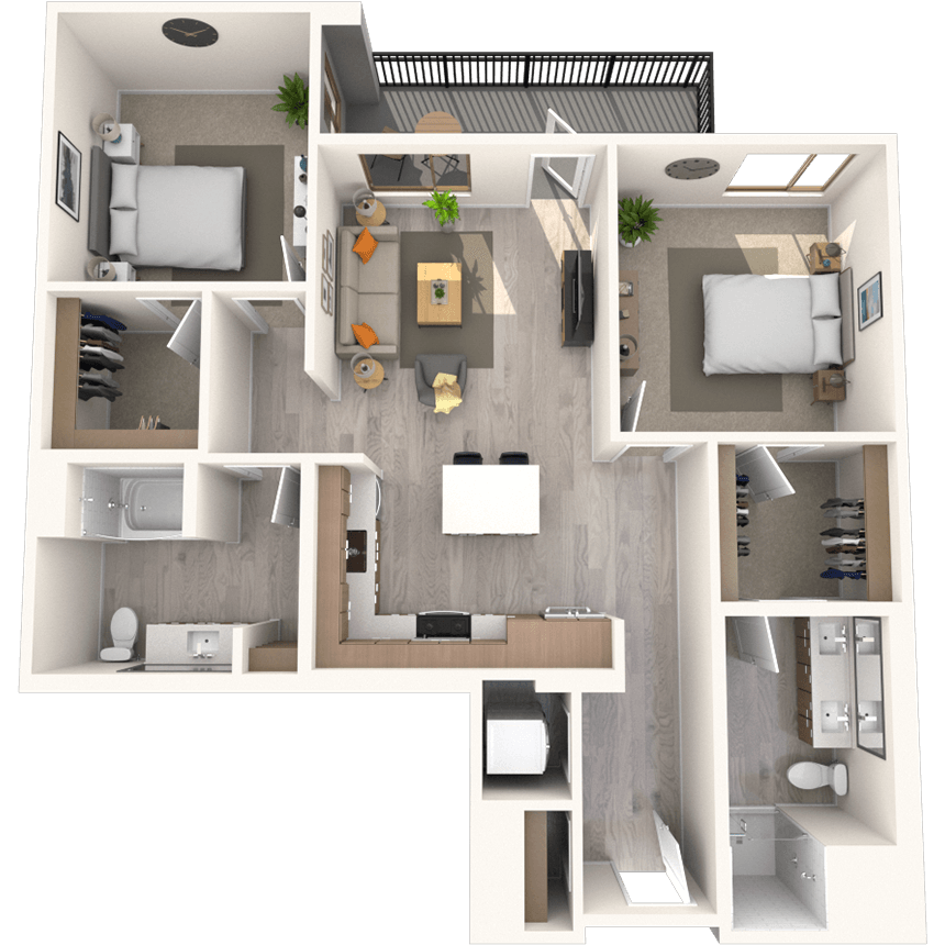 Modelo de apartamento: A3 1x1-831 SFDesde $1,8531 Dormitorio, 1 Baño, 831 sq ftDisponible Ahora![]()