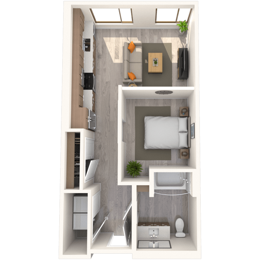 Estudio, 1 Baño, 607 pies²Disponible AhoraGalería del Modelo