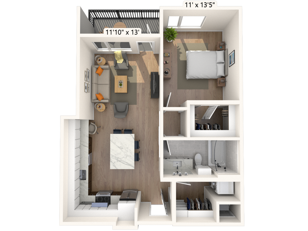 Modelo de apartamento: A1.3 1x1 651 SFDesde $1,6711 Dormitorio, 1 Baño, 651 sq ftDisponible AhoraLos planos son representaciones artísticas. Todas las dimensiones son aproximadas. El producto y las especificaciones reales pueden variar en tamaño o detalle. No todas las características están disponibles en cada vivienda en alquiler. Por favor, consulta con un representante para obtener más detalles.