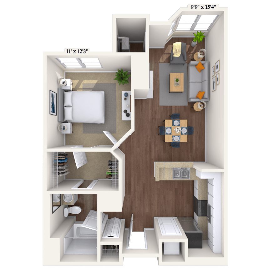 1 Dormitorio, 1 Baño, 689-790 pies²Disponible AhoraGalería del Modelo