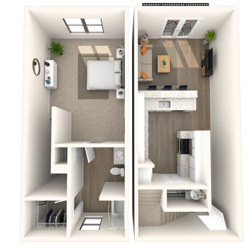 Estudio, 1 Baño, 640 pies²Disponible AhoraEl más grandeEsta opción tiene las unidades más grandes para este modeloGalería del Modelo