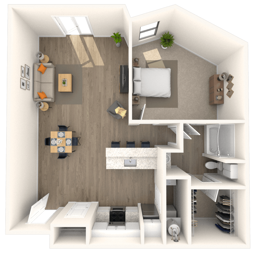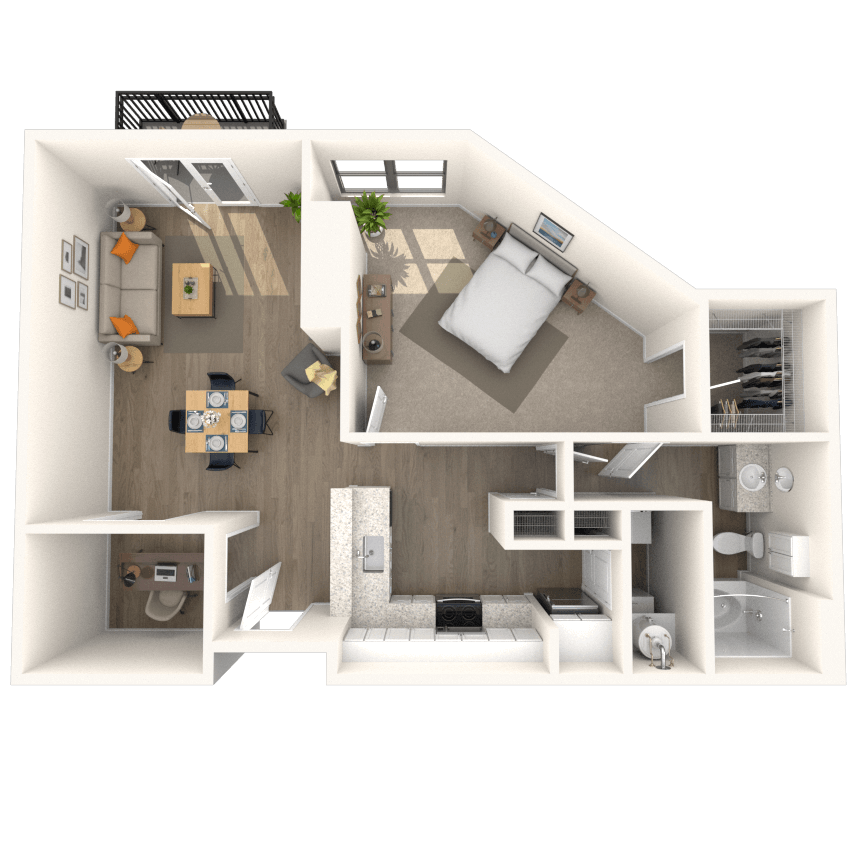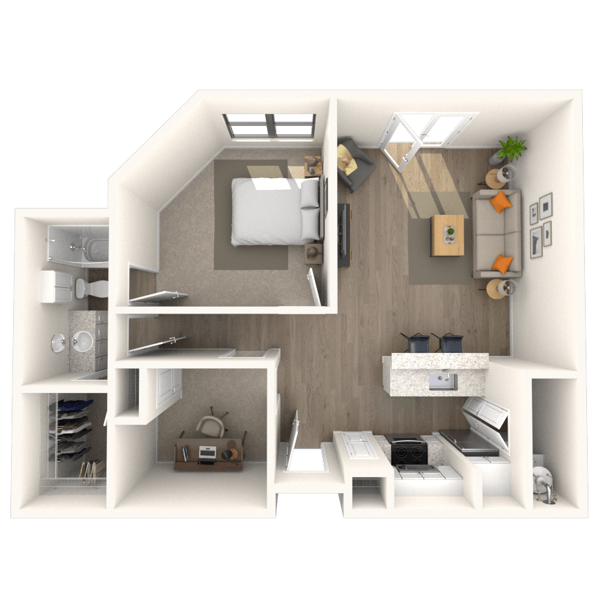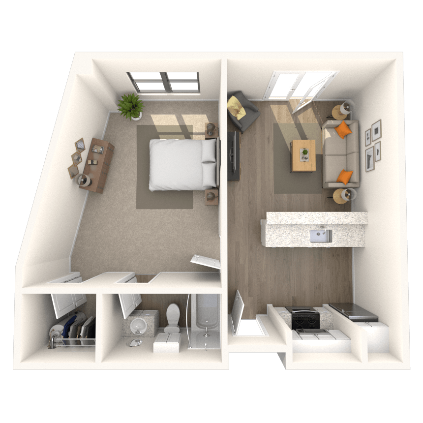 Modelo de apartamento: Studio 0x1 516-643 SFDesde $1,560Estudio, 1 Baño, 574 sq ftDisponible Ahora![]()