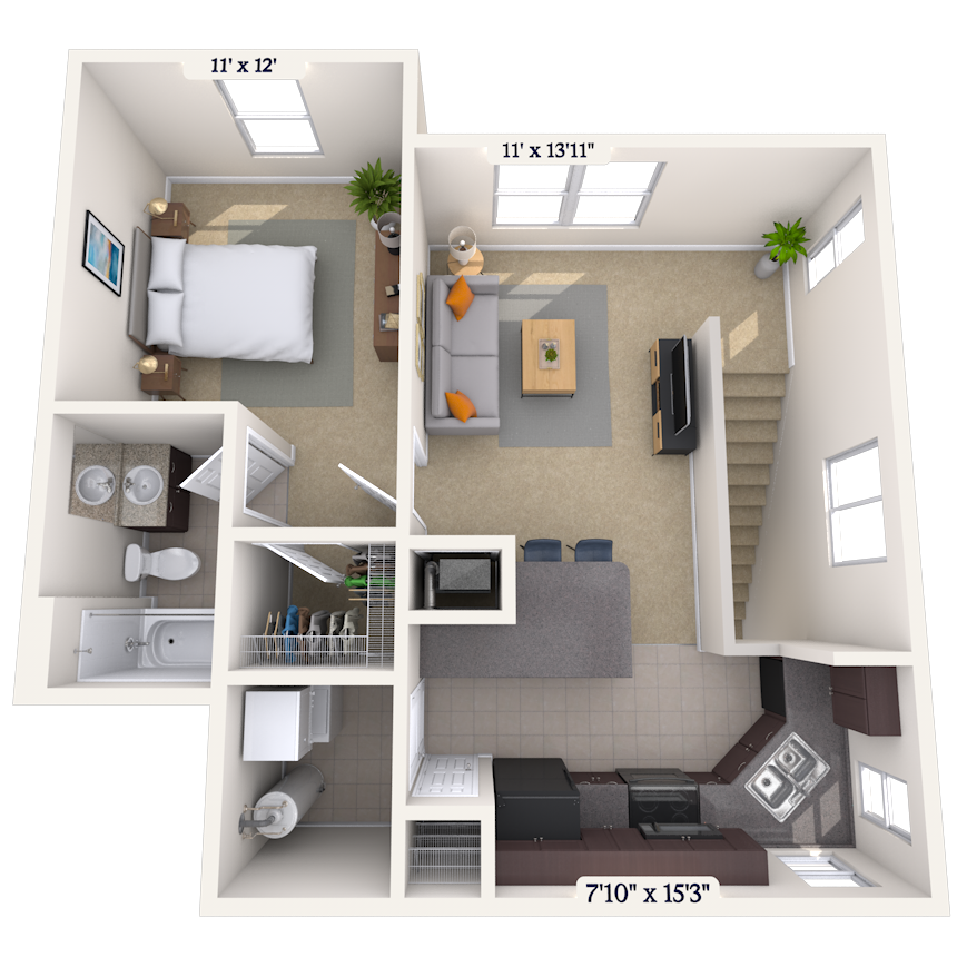 Modelo de apartamento: 11CDesde $1,1681 Dormitorio, 1 Baño, 755 sq ftDisponible December 8, 2025![]()