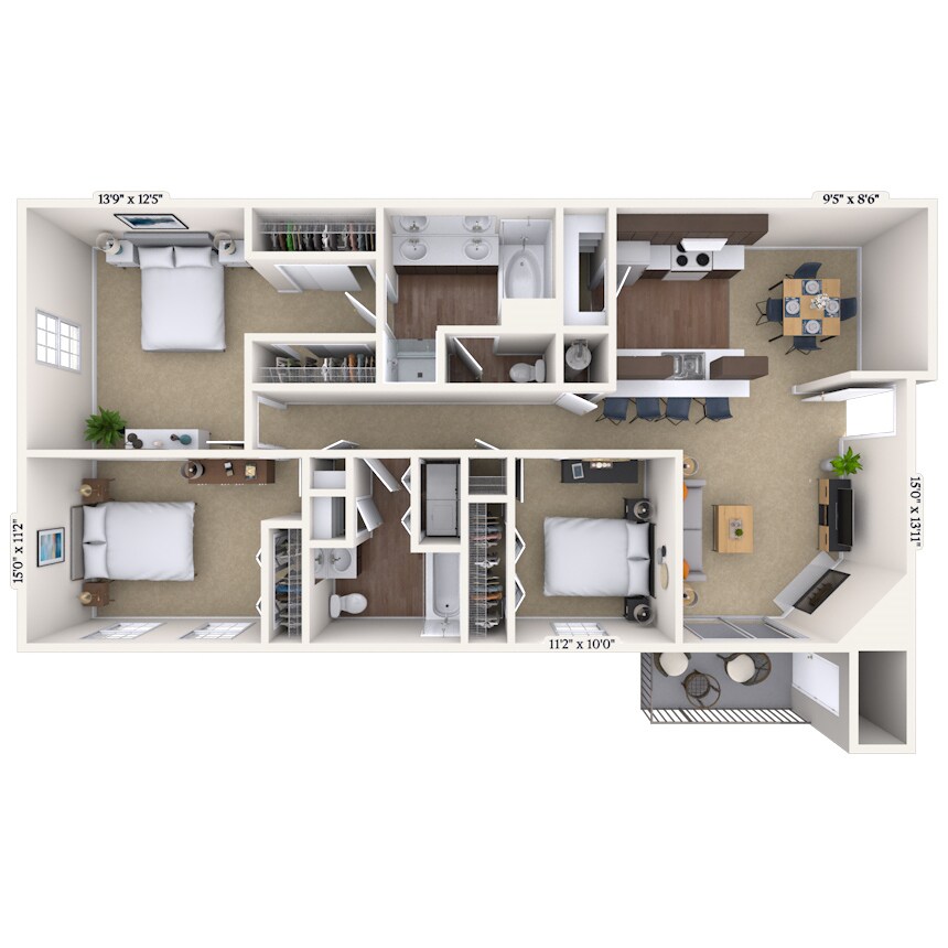 Modelo de apartamento: The PreaknessDesde $1,3632 Dormitorios, 2 Baños, 1109 sq ftDisponible Ahora![]()