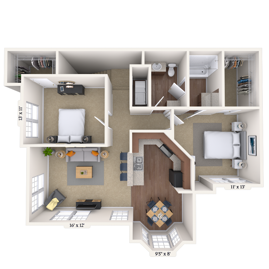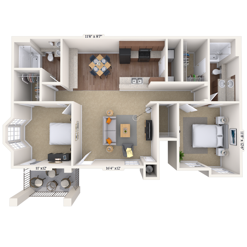 2 Dormitorios, 2 Baños, 1142 pies²Precio Mensual TotalDisponible AhoraEl más grandeEsta opción tiene las unidades más grandes para este modeloDetalles de Diponibilidad