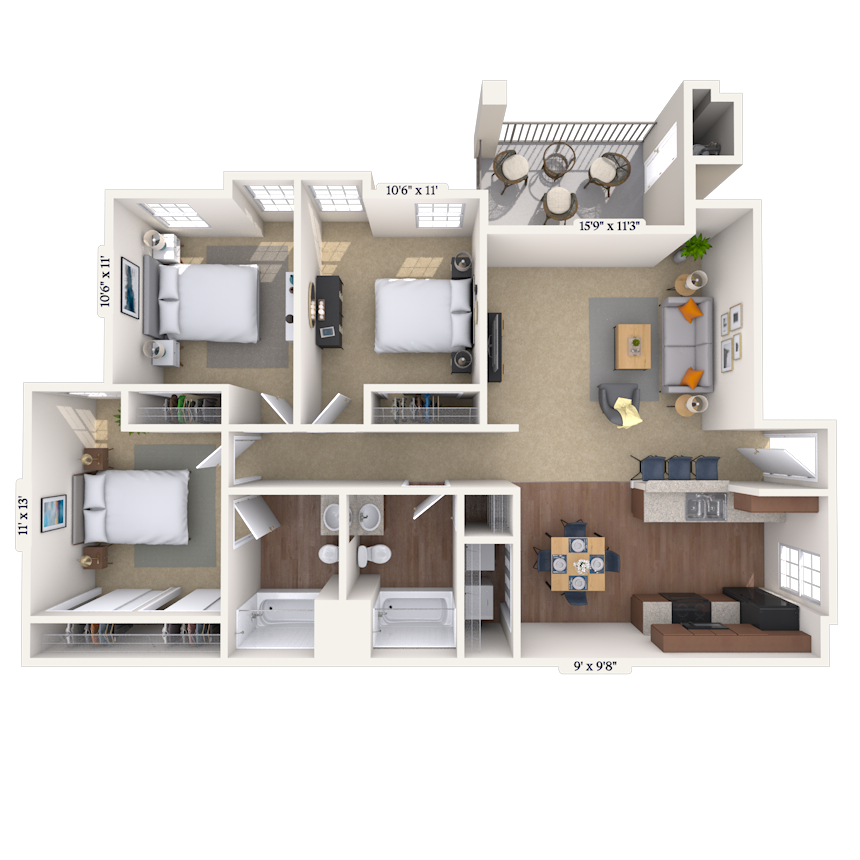 Modelo de apartamento: MelliniDesde $1,4661 Dormitorio, 1 Baño, 830-847 sq ftDisponible Ahora![]()