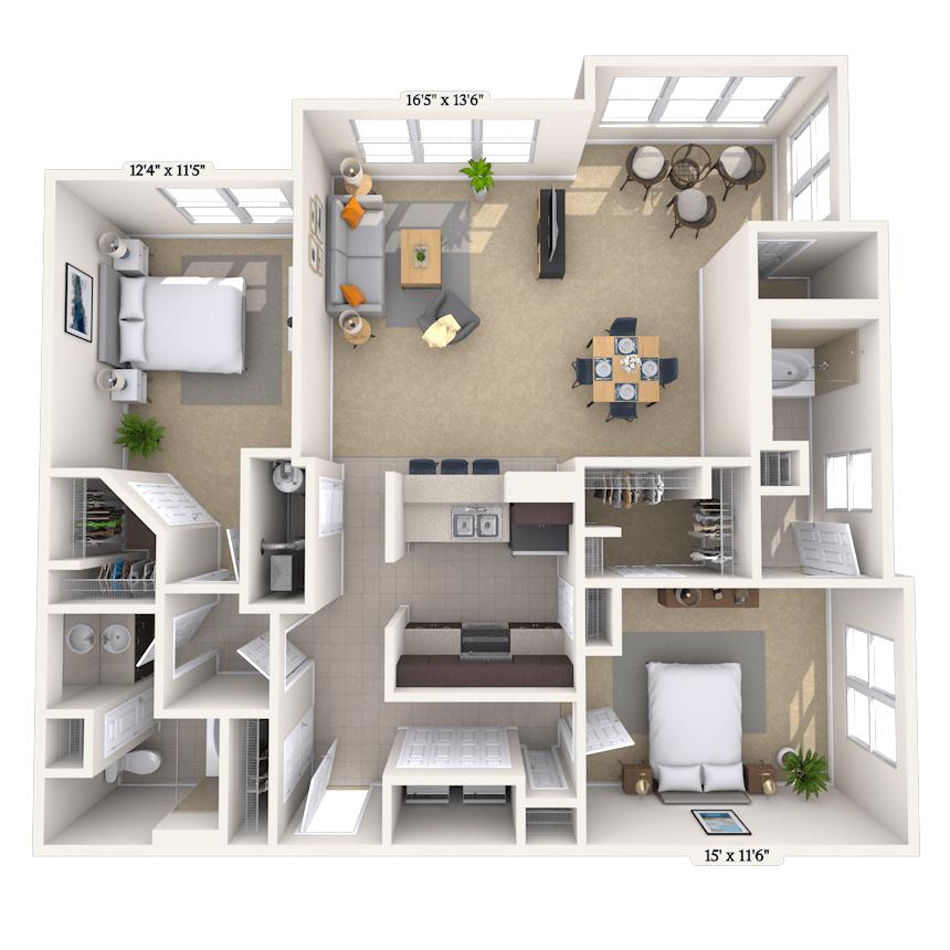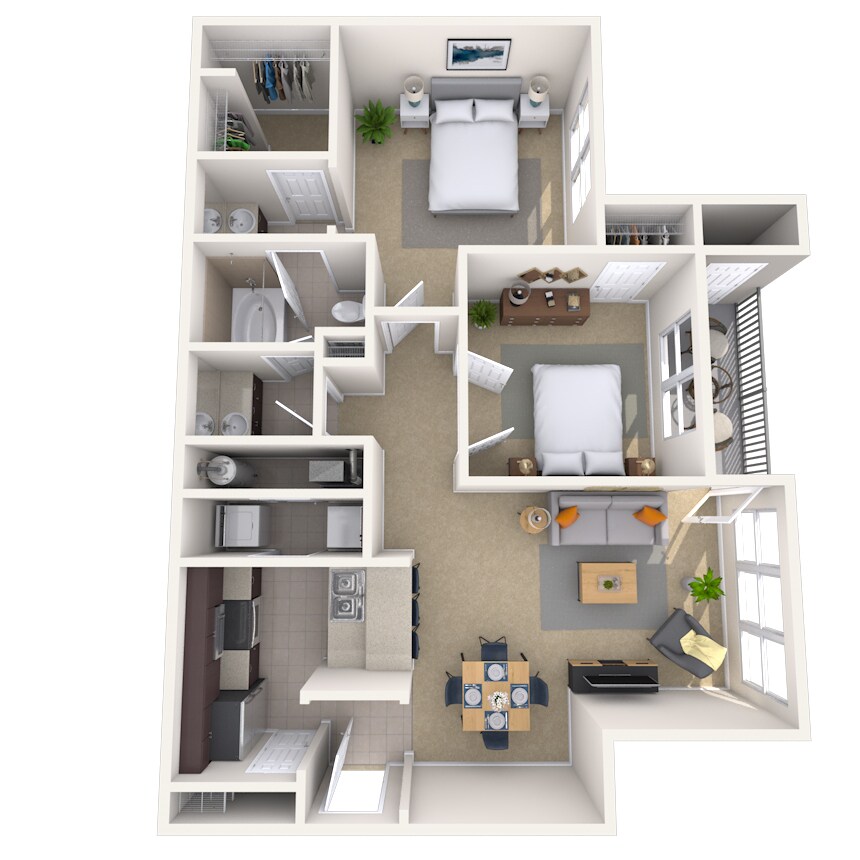 2 Dormitorios, 2 Baños, 1223-1333 pies²Disponible AhoraEl más grandeEsta opción tiene las unidades más grandes para este modeloGalería del Modelo