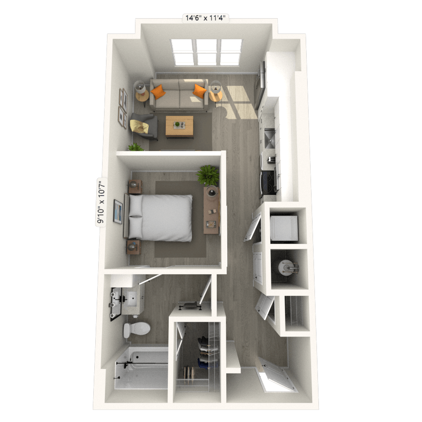 1 Dormitorio, 1 Baño, 604 pies²Disponible AhoraGalería del Modelo