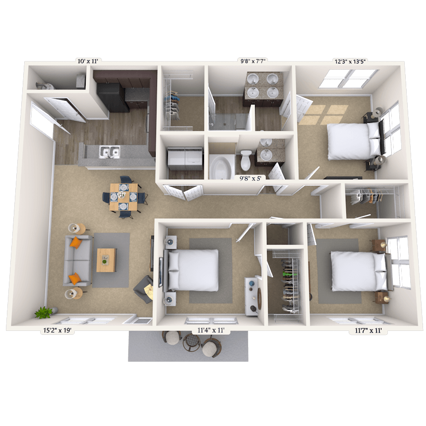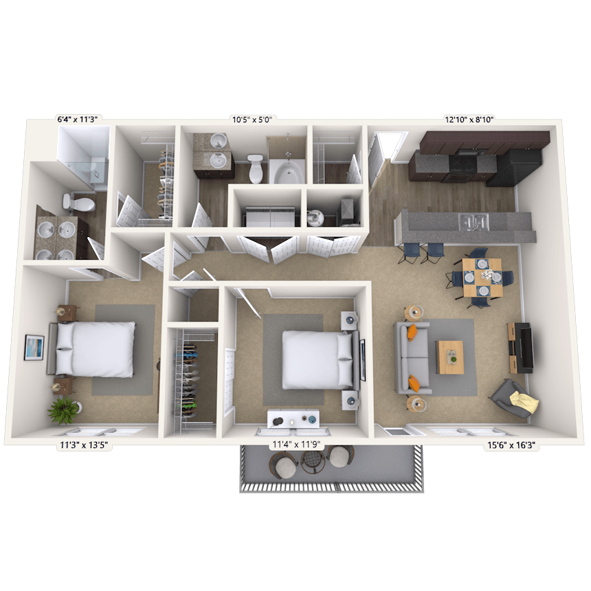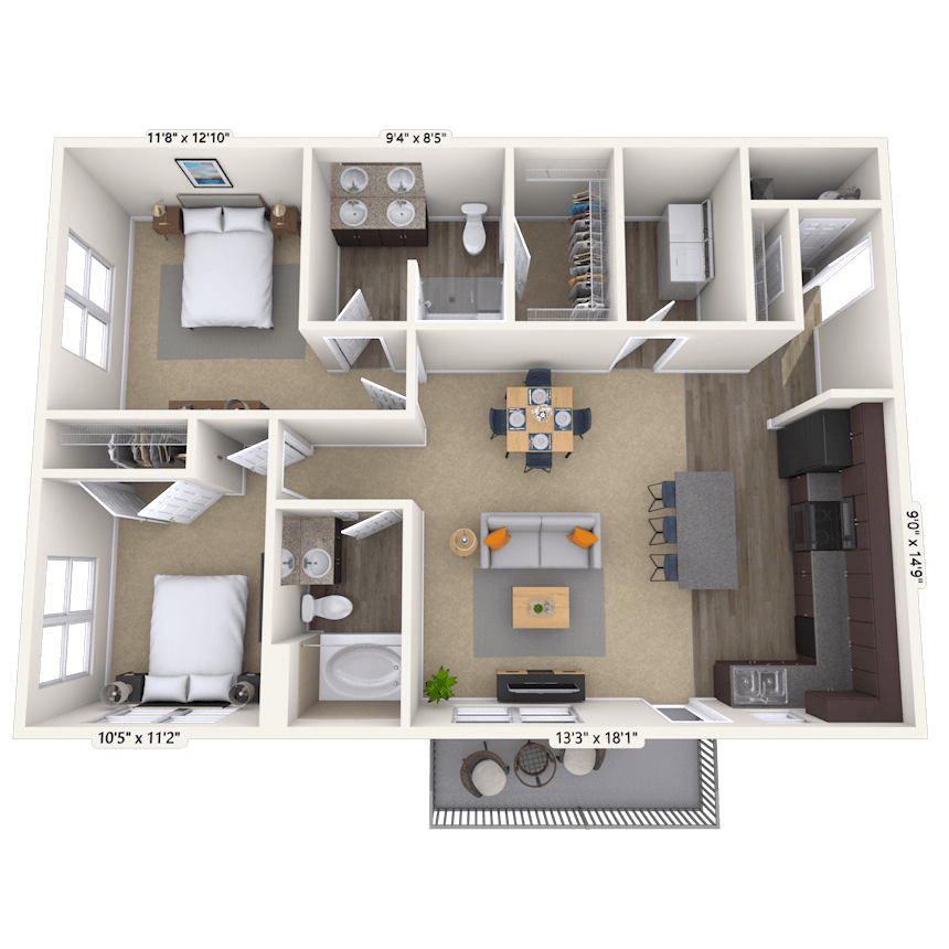 1 Dormitorio, 1 Baño, 837 pies²Disponible AhoraEl más grandeEsta opción tiene las unidades más grandes para este modeloGalería del Modelo