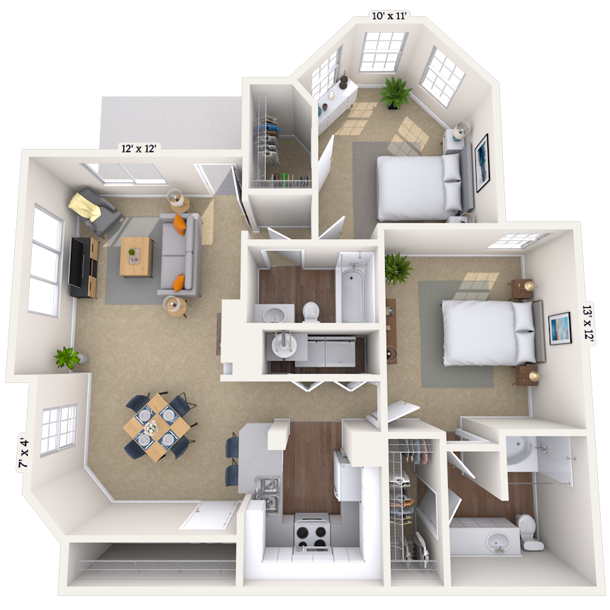 2 Dormitorios, 2 Baños, 1184 pies²Disponible AhoraGalería del Modelo