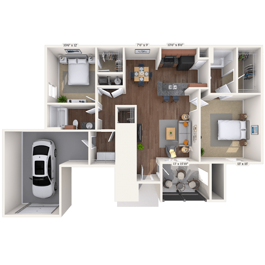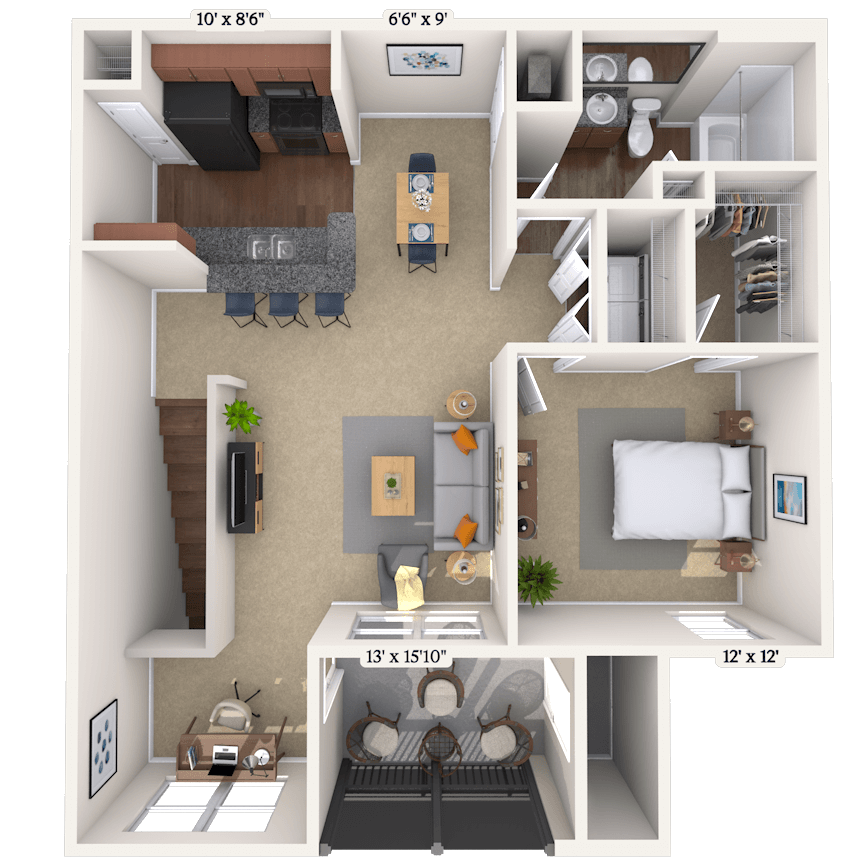 1 Dormitorio, 1 Baño, 883 pies²Disponible AhoraEl más grandeEsta opción tiene las unidades más grandes para este modeloGalería del Modelo