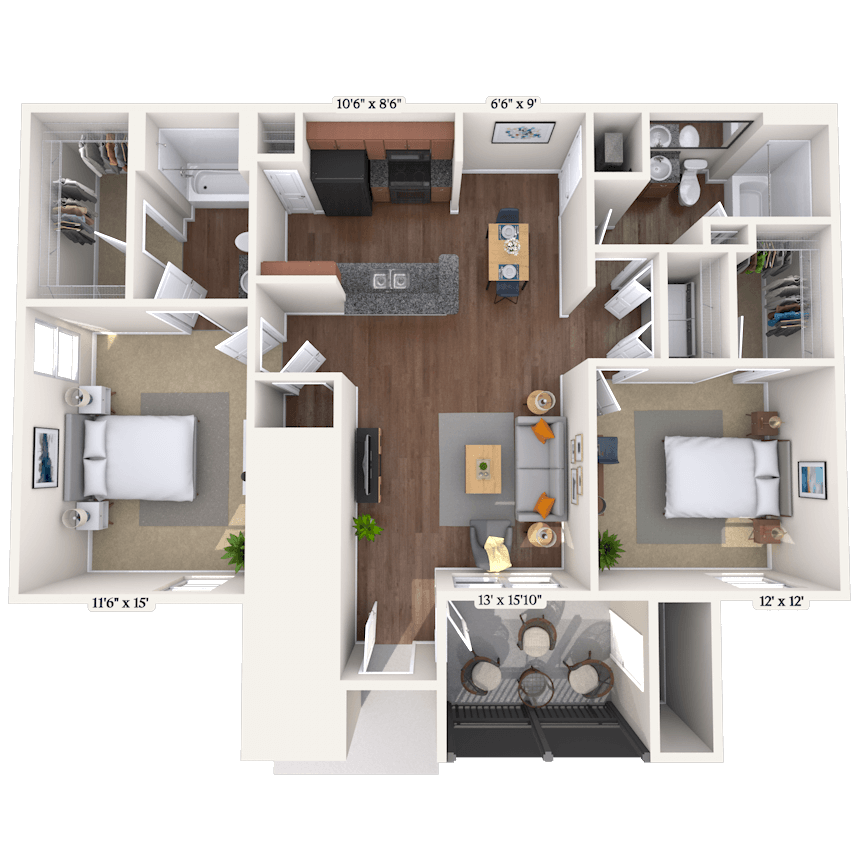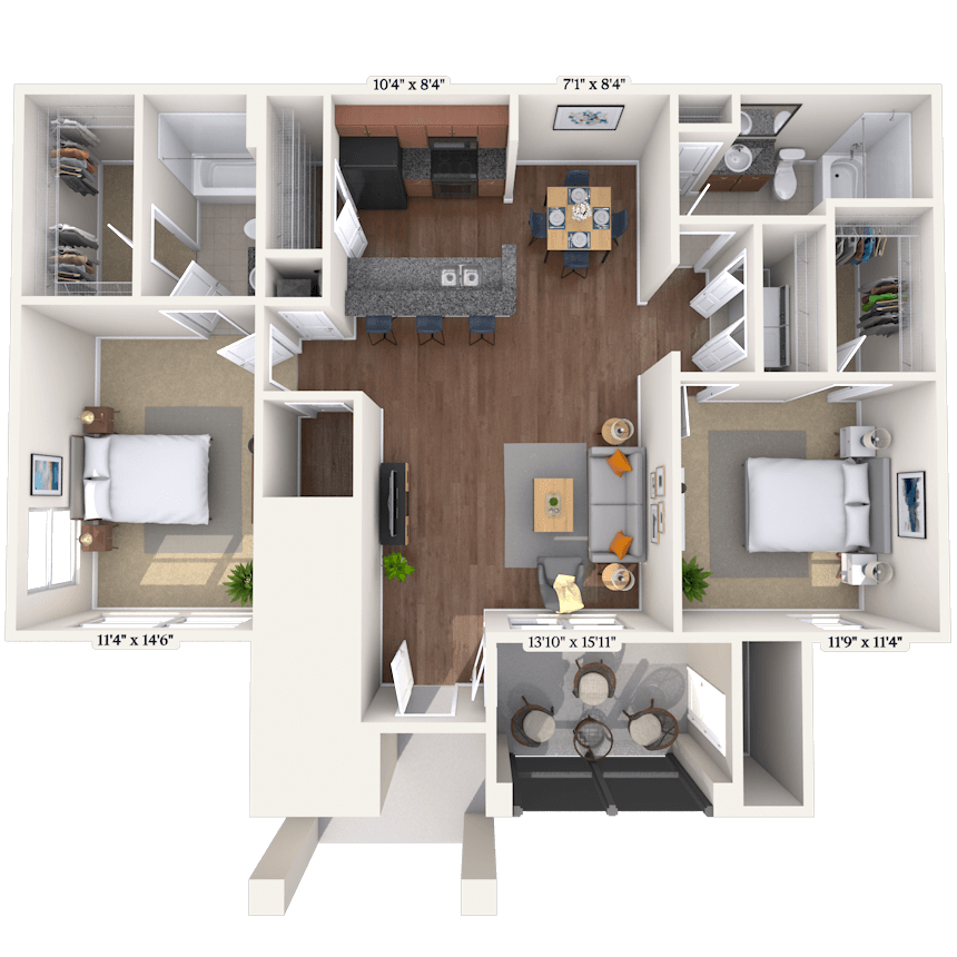 1 Dormitorio, 1 Baño, 802 pies²Disponible January 20, 2026El más grandeEsta opción tiene las unidades más grandes para este modeloGalería del Modelo