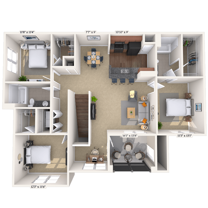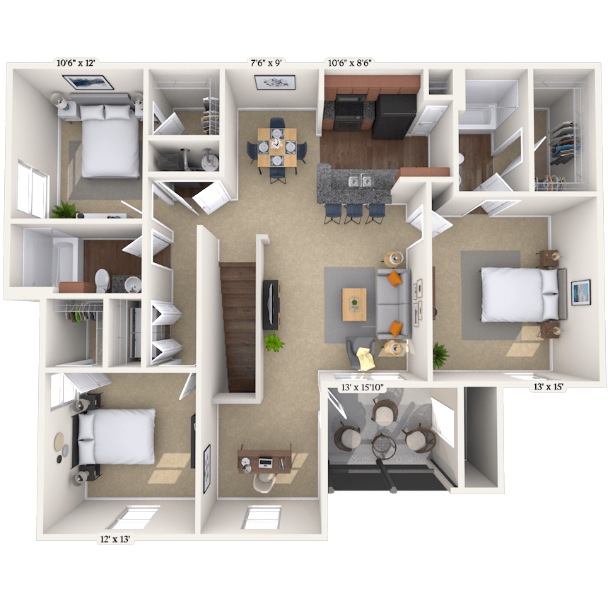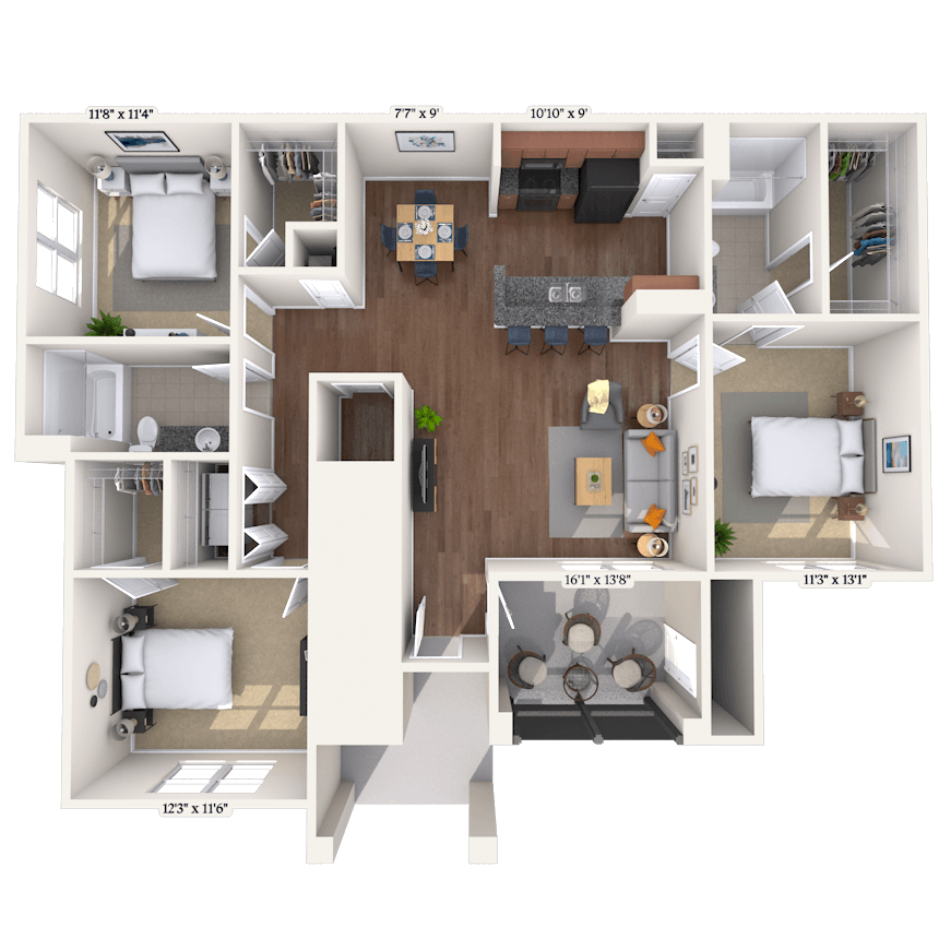 Modelo de apartamento: TortugaDesde $1,5661 Dormitorio, 1 Baño, 682 sq ftDisponible Ahora![]()
