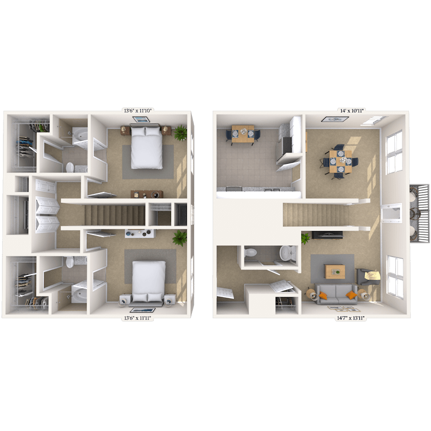 1 Dormitorio, 1 Baño, 768-886 pies²Disponible AhoraEl más grandeEsta opción tiene las unidades más grandes para este modeloGalería del Modelo