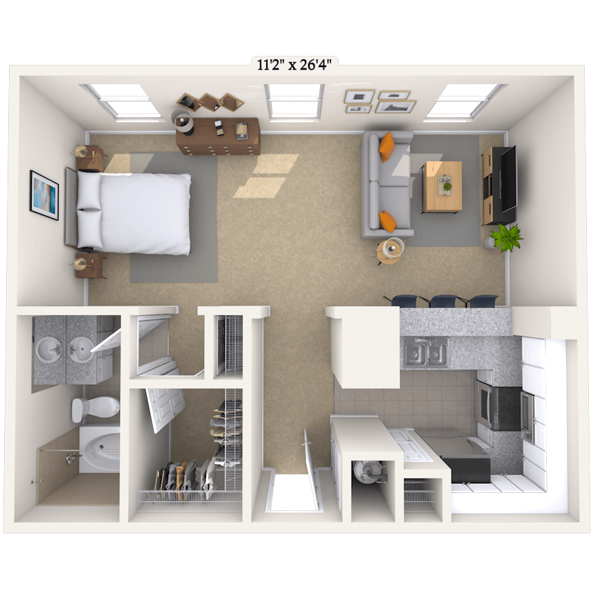 Estudio, 1 Baño, 563 pies²Disponible Mar 17Galería del Modelo