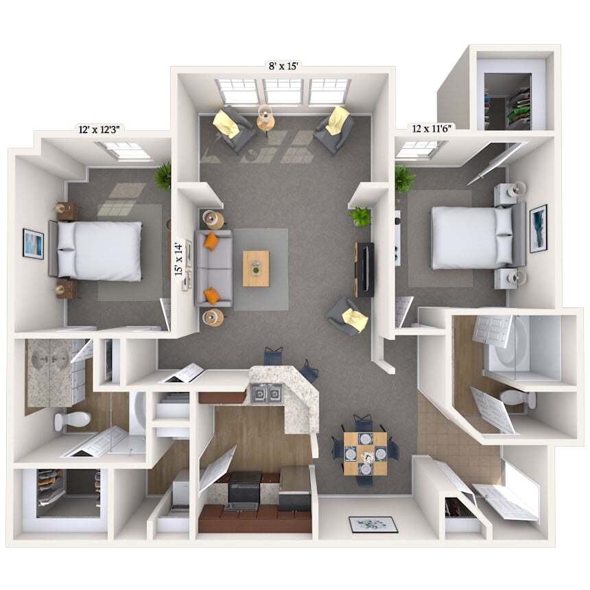 1 Dormitorio, 1 Baño, 846-879 pies²Disponible AhoraGalería del Modelo