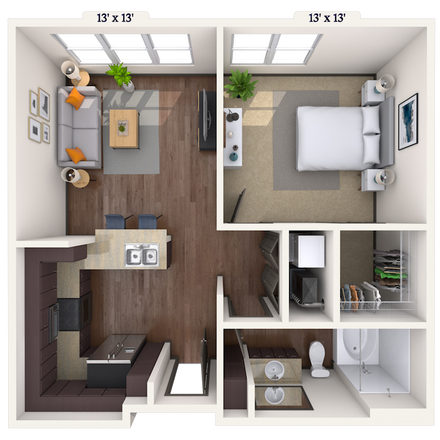 Estudio, 1 Baño, 601 pies²Disponible AhoraGalería del Modelo