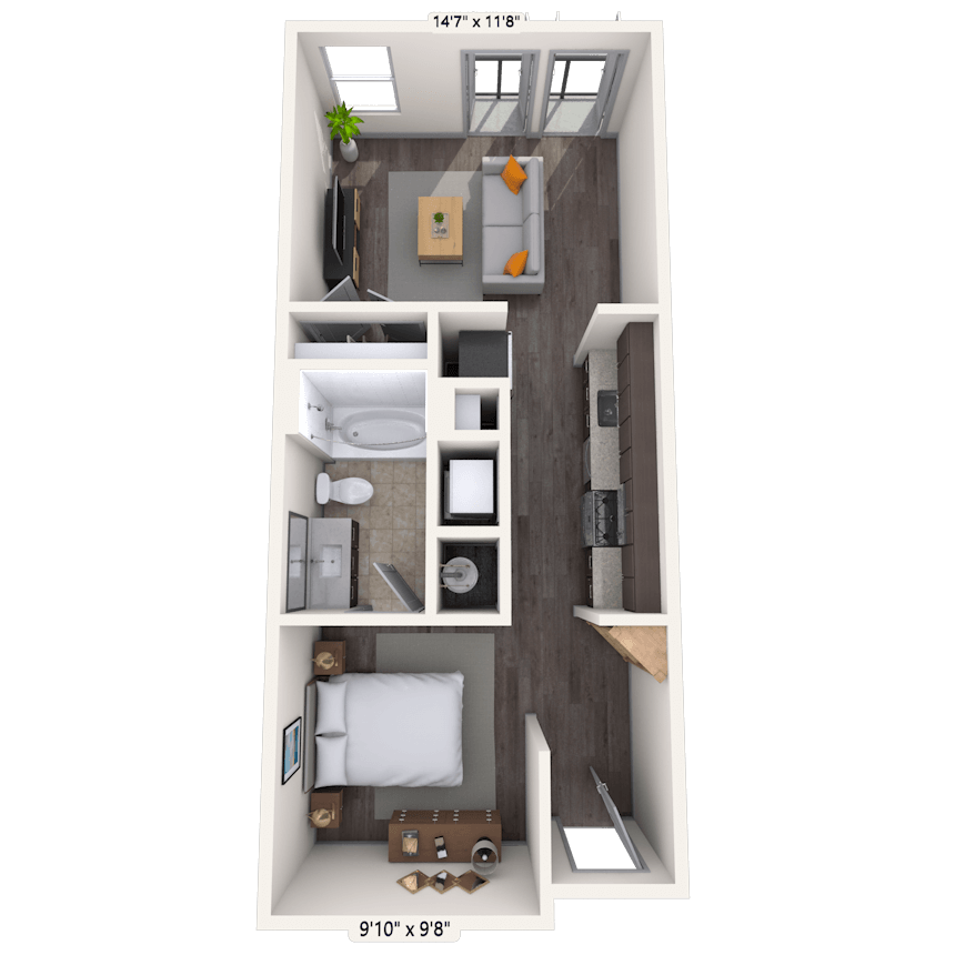 1 Dormitorio, 1 Baño, 662-678 pies²Disponible AhoraGalería del Modelo
