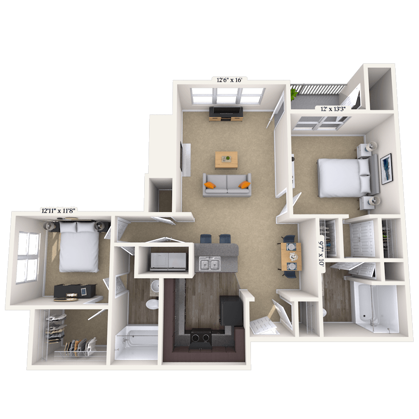 Modelo de apartamento: SpyglassDesde $9181 Dormitorio, 1 Baño, 567 sq ftDisponible Ahora![]()
