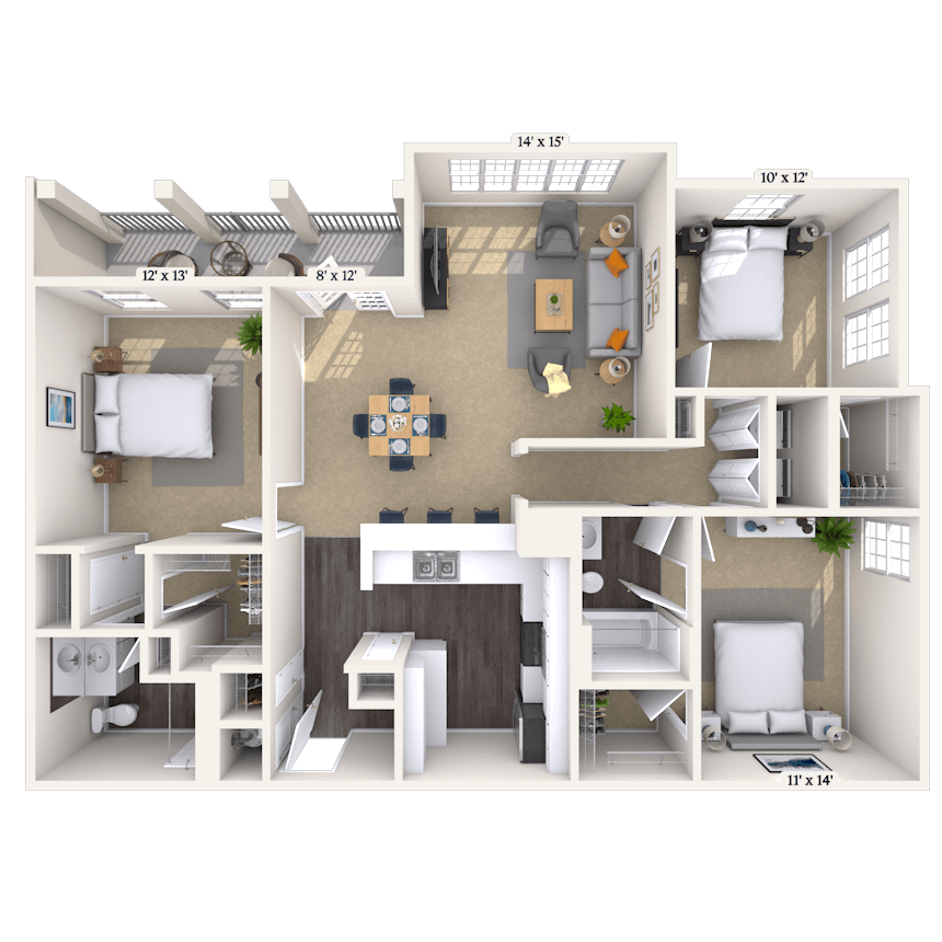 Modelo de apartamento: Traditional 1x1 591-713 SFDesde $1,4701 Dormitorio, 1 Baño, 591-613 sq ftDisponible Ahora![]()
