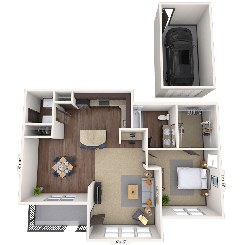 1 Dormitorio, 1 Baño, 897 pies²Disponible Mar 21El más grandeEsta opción tiene las unidades más grandes para este modeloGalería del Modelo