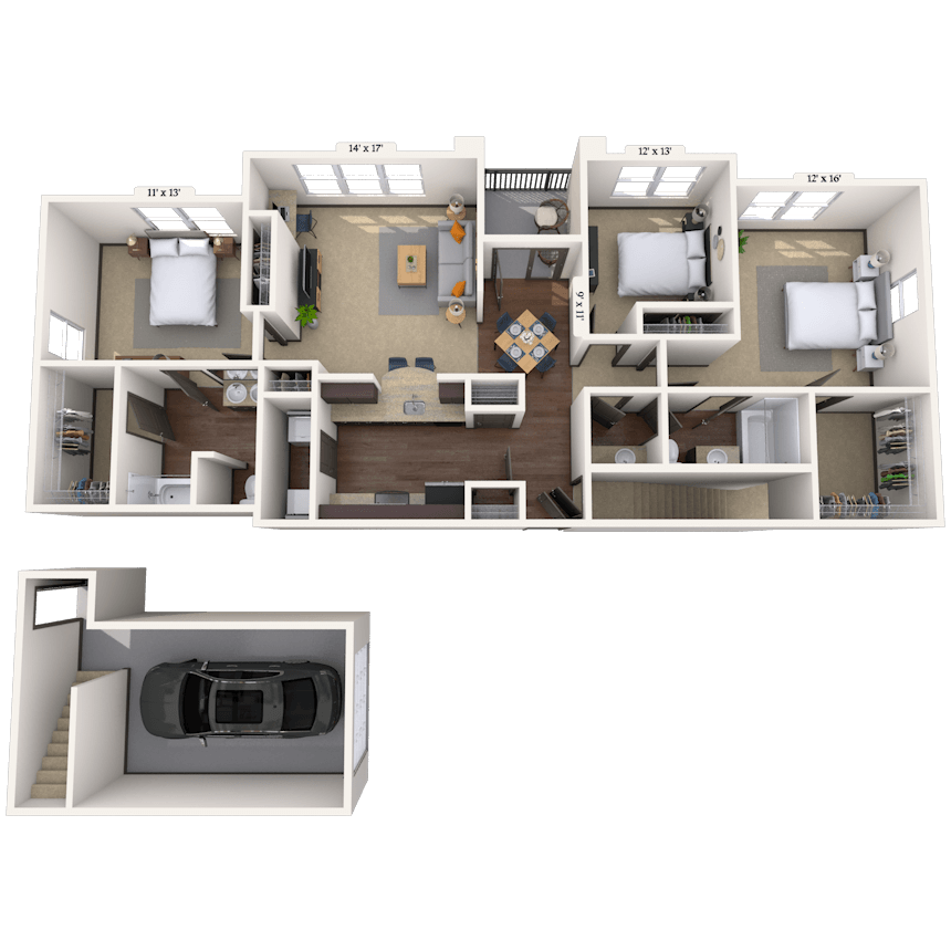 Modelo de apartamento: DahliaDesde $1,2231 Dormitorio, 1 Baño, 878 sq ftDisponible Ahora![]()