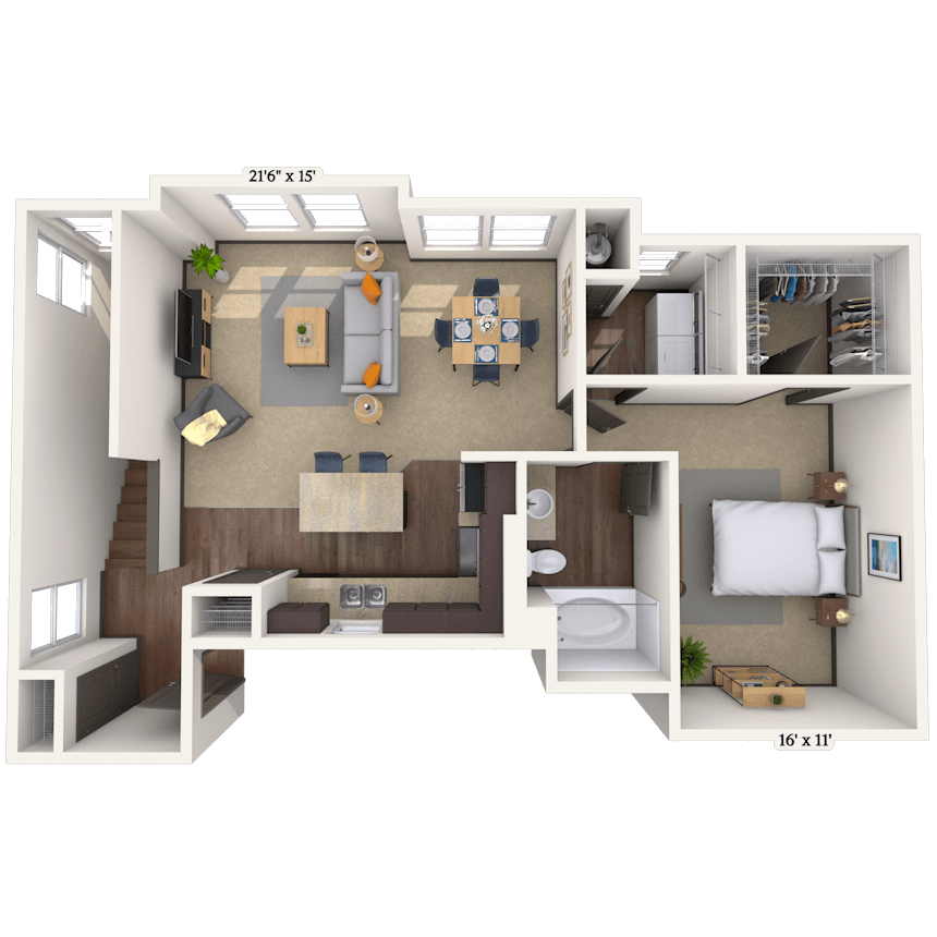 1 Dormitorio, 1 Baño, 628-702 pies²Disponible AhoraGalería del Modelo