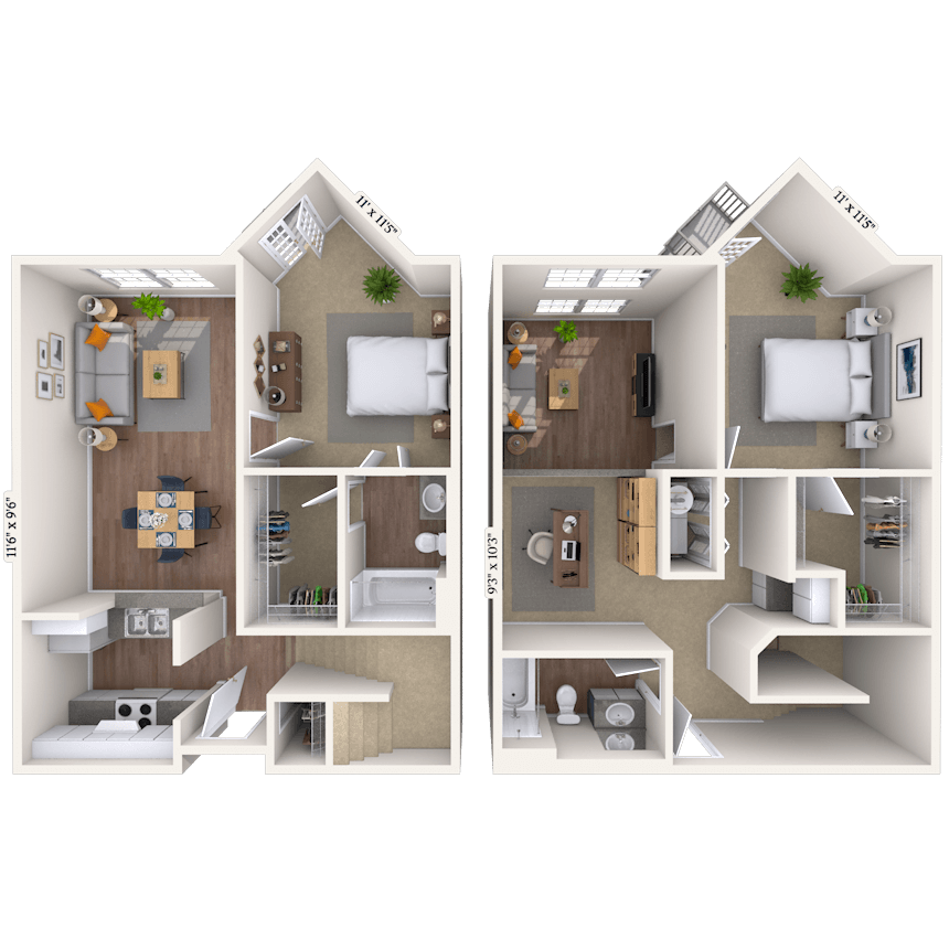 1 Dormitorio, 1 Baño, 905 pies²Disponible AhoraGalería del Modelo