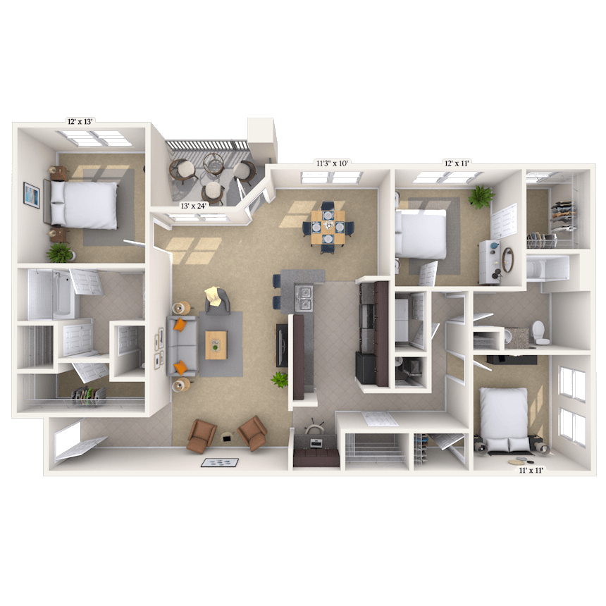 Modelo de apartamento: Central ParkDesde $1,5532 Dormitorios, 2 Baños, 1286-1365 sq ftDisponible Ahora![]()