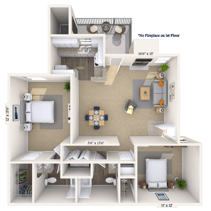 1 Dormitorio, 1 Baño, 575 pies²Disponible AhoraGalería del Modelo