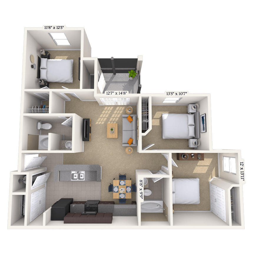 3 Dormitorios, 2 Baños, 1234 pies²Disponible AhoraGalería del Modelo