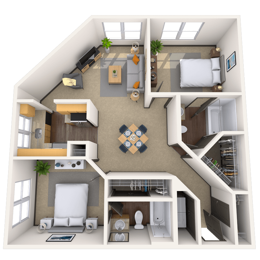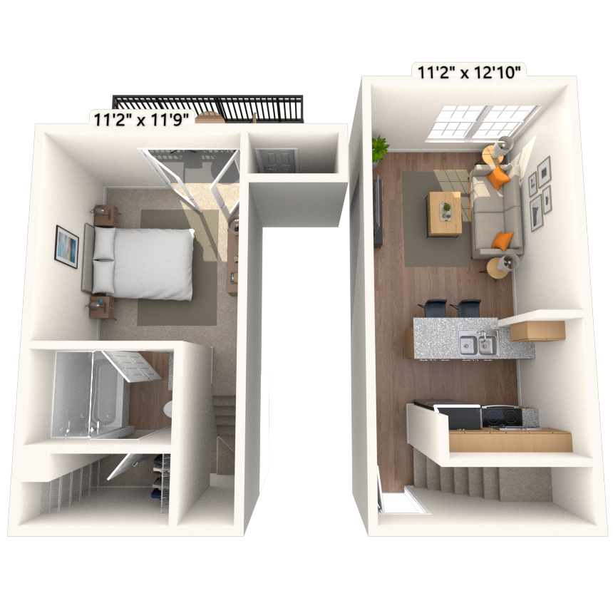 1 Dormitorio, 1 Baño, 530-761 pies²Disponible AhoraGalería del Modelo