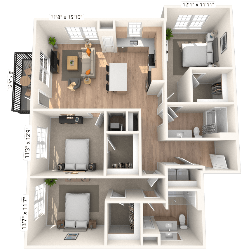Modelo de apartamento: A4 1x1 834 SFDesde $1,5981 Dormitorio, 1 Baño, 834 sq ftDisponible Ahora![]()