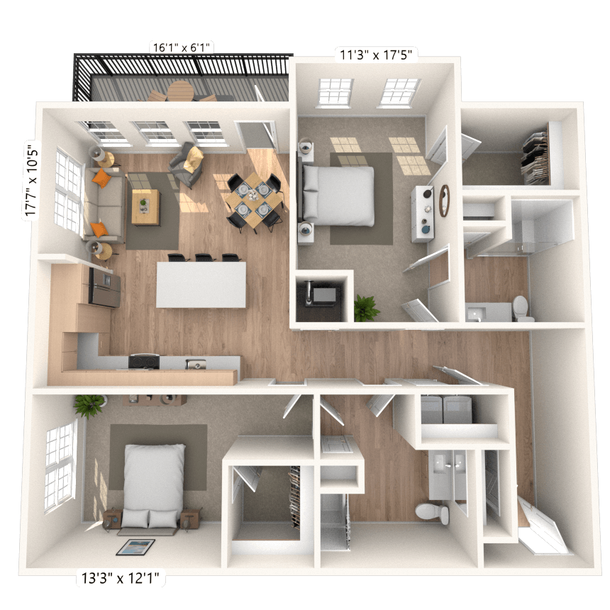 Modelo de apartamento: A3 1x1 774 SFDesde $1,5231 Dormitorio, 1 Baño, 774 sq ftDisponible February 9, 2026![]()
