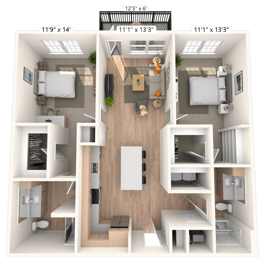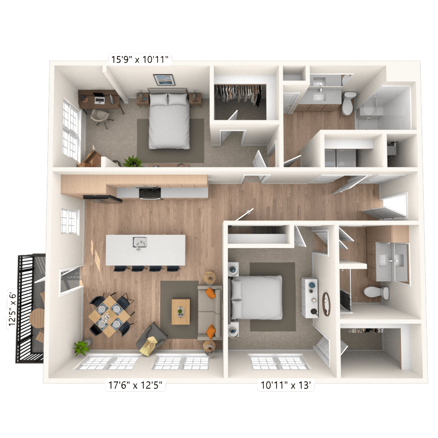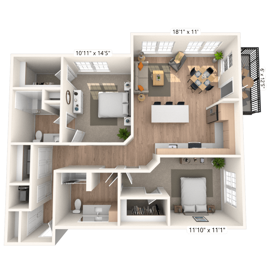 Modelo de apartamento: A6.2 1x1 937 SFDesde $1,6581 Dormitorio, 1 Baño, 937 sq ftDisponible February 8, 2026![]()