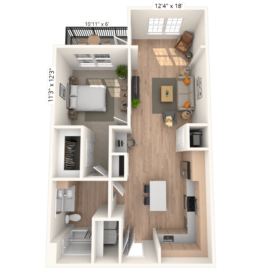 1 Dormitorio, 1 Baño, 834 pies²Disponible AhoraGalería del Modelo