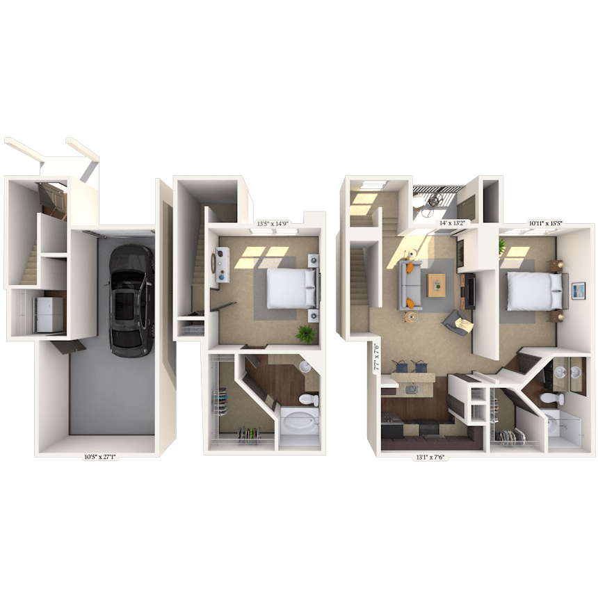 2 Dormitorios, 2 Baños, 1530 pies²Disponible AhoraEl más grandeEsta opción tiene las unidades más grandes para este modeloGalería del Modelo