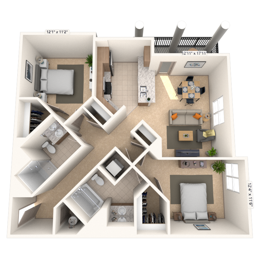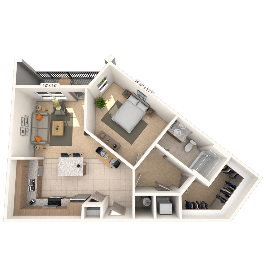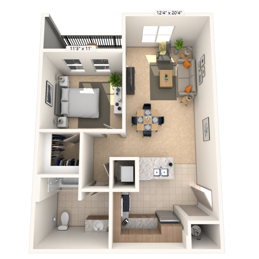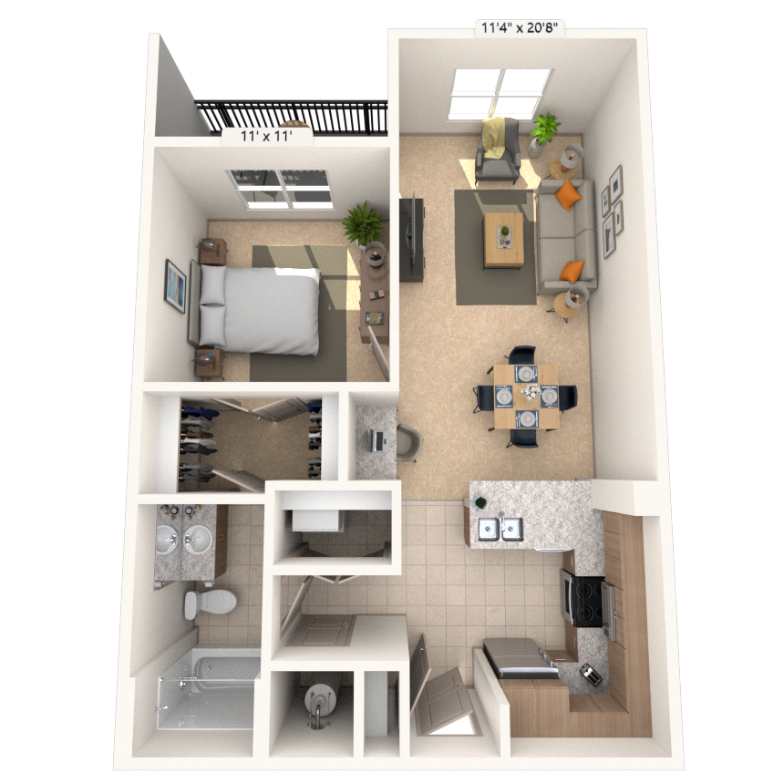 Estudio, 1 Baño, 623-632 pies²Disponible AhoraGalería del Modelo