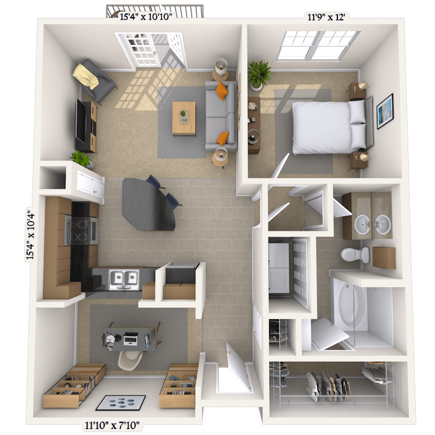 1 Dormitorio, 1 Baño, 835-862 pies²Disponible AhoraGalería del Modelo