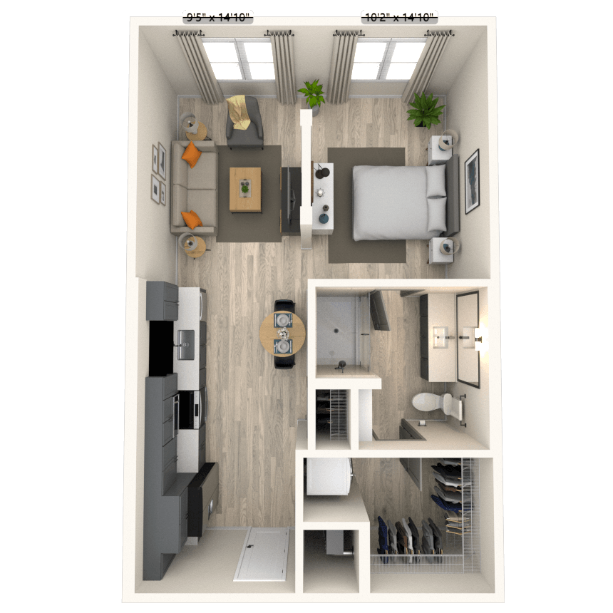 Estudio, 1 Baño, 600 pies²Disponible AhoraEl más baratoEsta opción tiene los precios más bajos para este modeloGalería del Modelo